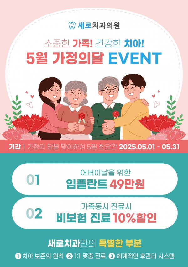 저희 새로치과에서 5월 가정의 달을 맞이하여 홈페이지를 통해 방문해주시는 분들을 위해